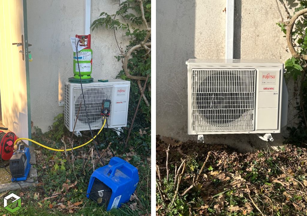Nous avons récupéré le gaz de l’ancien groupe extérieur et nous avons fait la mise en service du nouveau groupe extérieur.